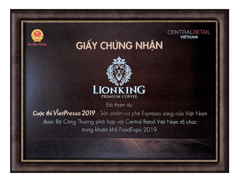 The 2019 VietPresso certification recognized LIONKING Premium Coffee in the arena honoring Vietnamese Espresso.