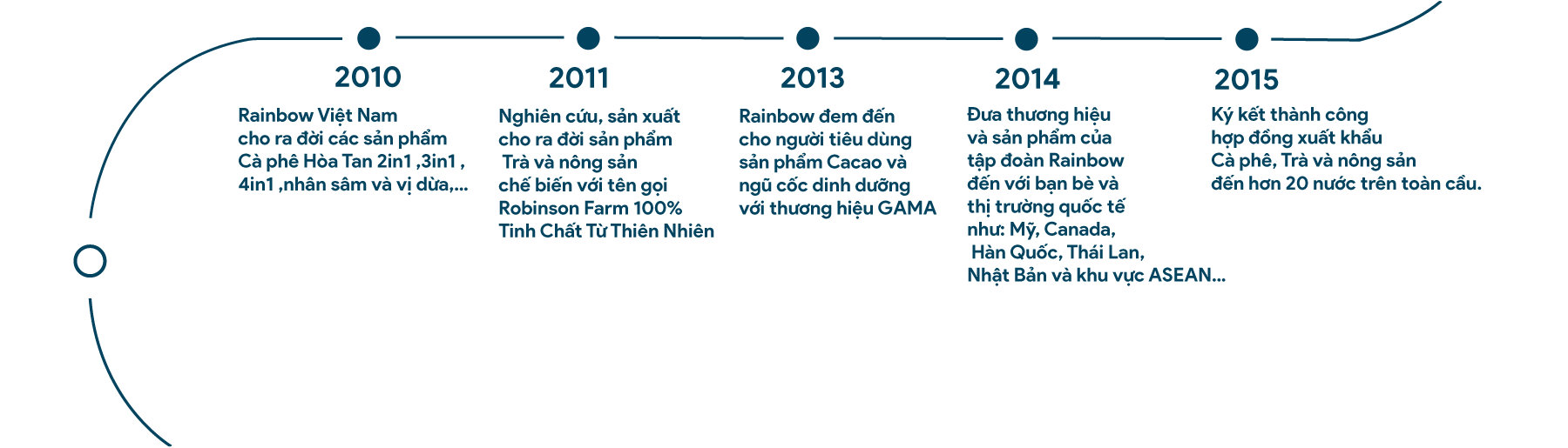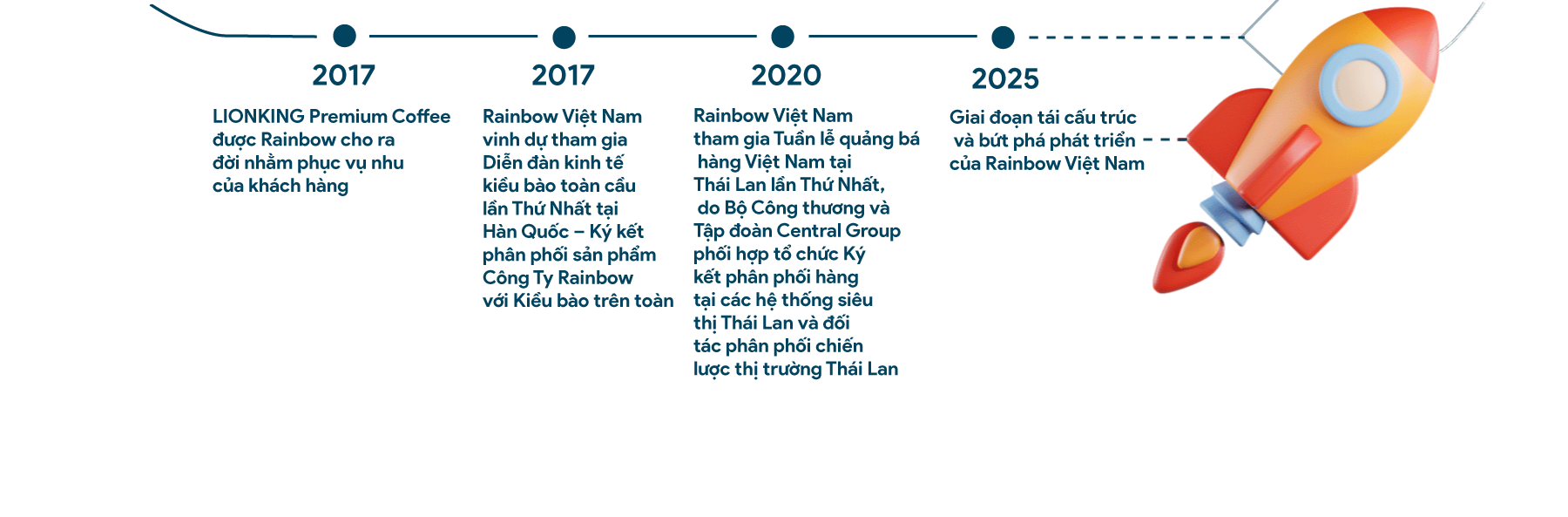 Ngoài Rainbow là thương hiệu uy tín hàng đầu Việt Nam trong lĩnh vực cà phê – nông sản. Hệ sinh thái Rainbow còn sở hữu và phát triển nhiều thương hiệu mạnh gồm: Rio, Robinson Farm, Gama, LionKing, Lion Café và Coffee 007.